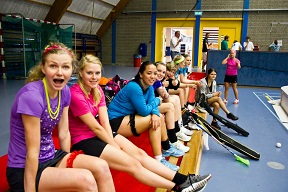 Djervspiller Anna (fremst på bildet), lover å gi de fisefine NHHI-damene (bak på bildet) skikkelig juling. "De skal få så Burberry-skjerfene flagrer" sier Djervs hissigpropp fra Høyanger. "Her blir det ingen hjelp å få fra pappa"